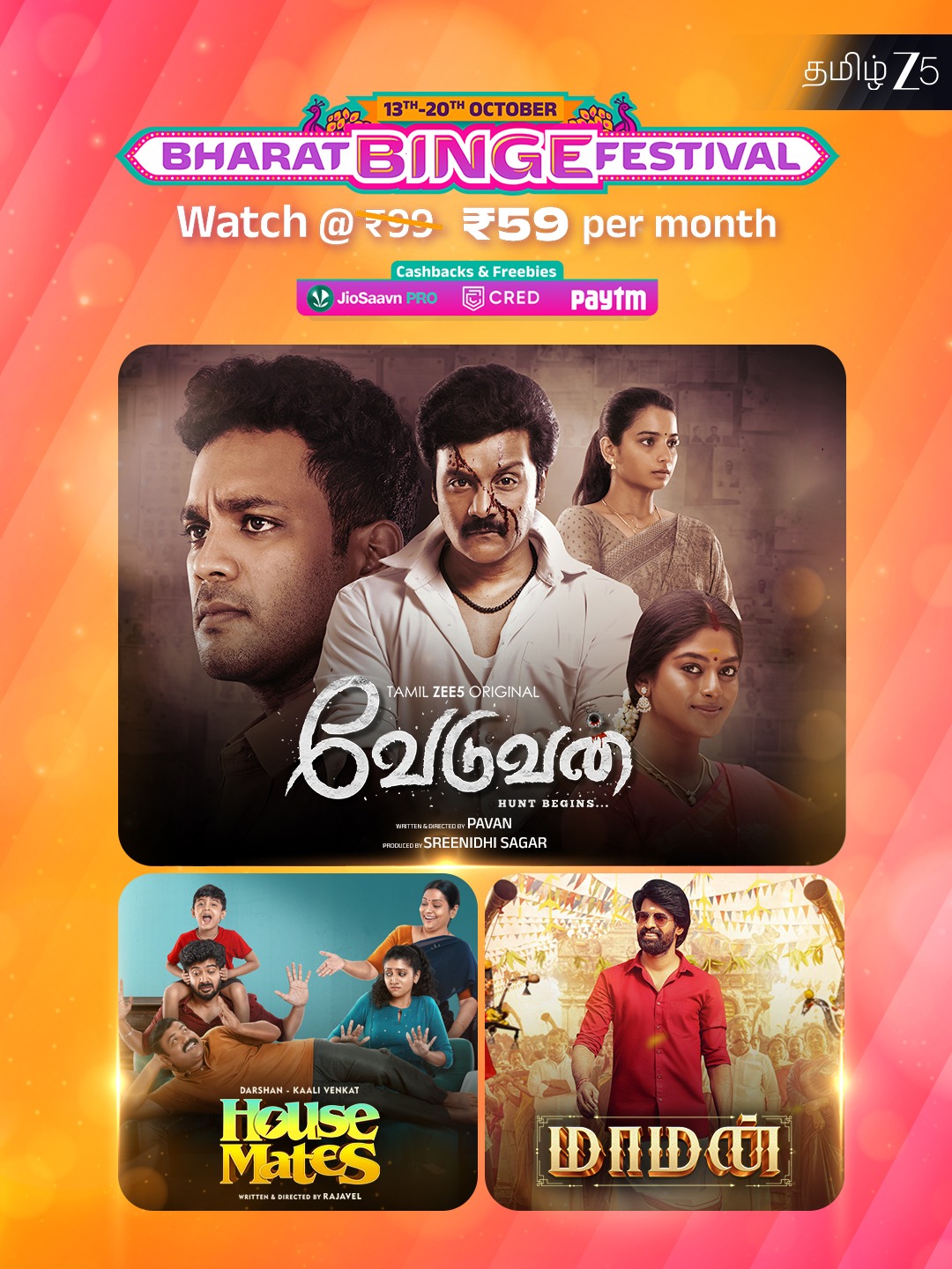Siju Prabhakaran, (Chief Business Officer, ZEE5) கூறுகையில்: “ஒவ்வொரு தீபாவளியும் பாரம்பரியம், மகிழ்ச்சி மற்றும் உறவுகளின் கதையை சொல்கிறது. ZEE5 இல், இந்தக் கதைகளை உங்கள் மொழியில், உங்கள் திரையில், புதிய முறையில் கொண்டு வருகிறோம். இந்த Bharat Binge Festival வாயிலாக, நாங்கள் ஒவ்வொரு மொழிக்கும் ஏற்ற, துணிச்சலான கதைகளை வழங்கியுள்ளோம். சிறப்பு சலுகைகள் மூலம், இந்தக் கதைகள் எல்லோரும் அணுகக்கூடியதாகவும் இருக்கின்றன.”