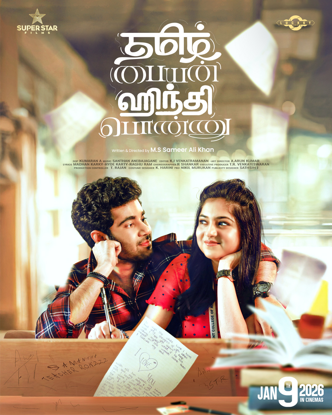 சூப்பர் ஸ்டார் ஃபிலிம்ஸ் பேனரில் தயாரிக்கப்படும் கலகலப்பான காதல் கதையான ‘தமிழ் பையன் இந்தி பொண்ணு’ பொங்கல் வெளியீடாக ஜனவரி 9 அன்று திரையரங்குகளில் ரிலீஸ் ஆகிறது. இதை அறிவிக்கும் விதமாக படத்தின் இரண்டாம் பார்வையை (செகண்ட் லுக் போஸ்டர்) படக்குழுவினர் வெளியிட்டுள்ளனர்.